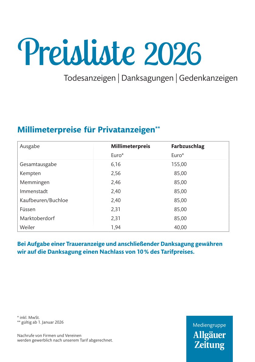 Ergänzung zu unseren Mediadaten 2026 (Preisliste Nr. 52, gültig ab 01. Januar 2026)