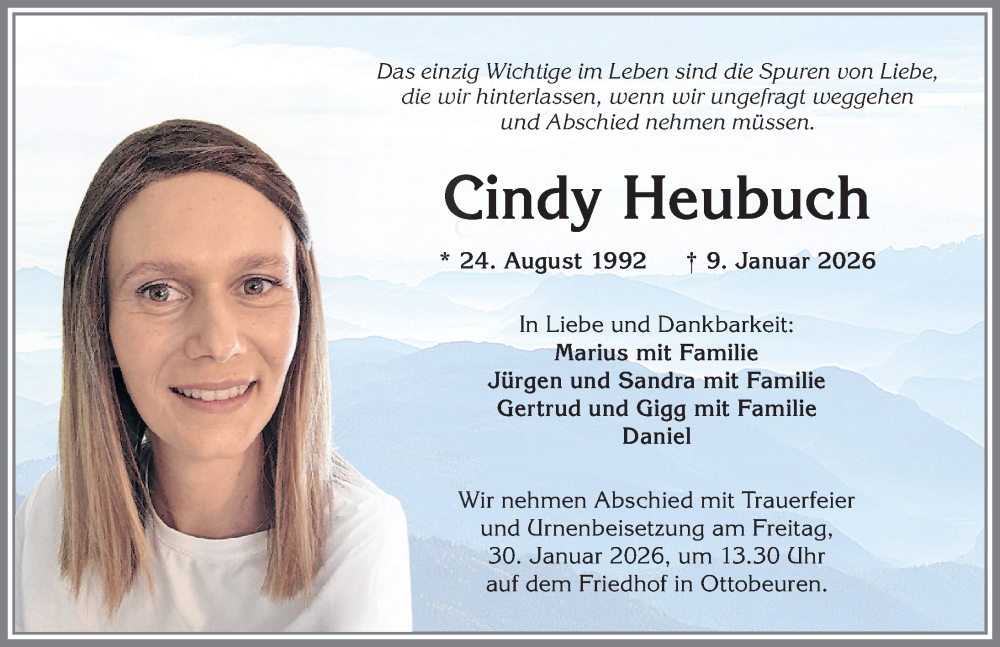 Hier finden Sie alle Traueranzeigen aus der Zeitung, die bisher für Cindy Heubuch erschienen sind. Weitere Traueranzeigen, die in der Zeitung erscheinen, werden hier ebenfalls aufgelistet