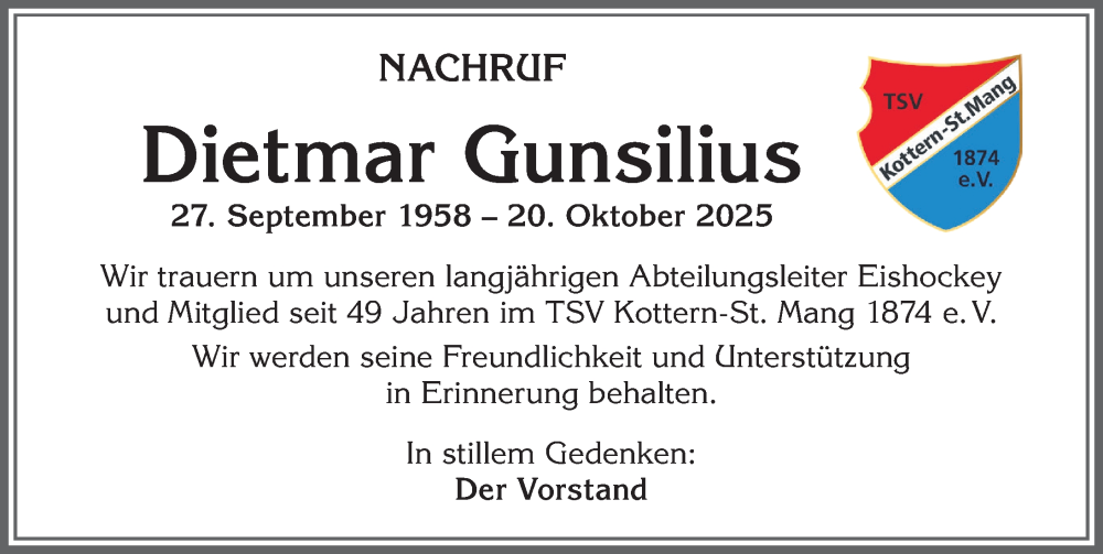 Hier finden Sie alle Traueranzeigen aus der Zeitung, die bisher für Dietmar Gunsilius erschienen sind. Weitere Traueranzeigen, die in der Zeitung erscheinen, werden hier ebenfalls aufgelistet