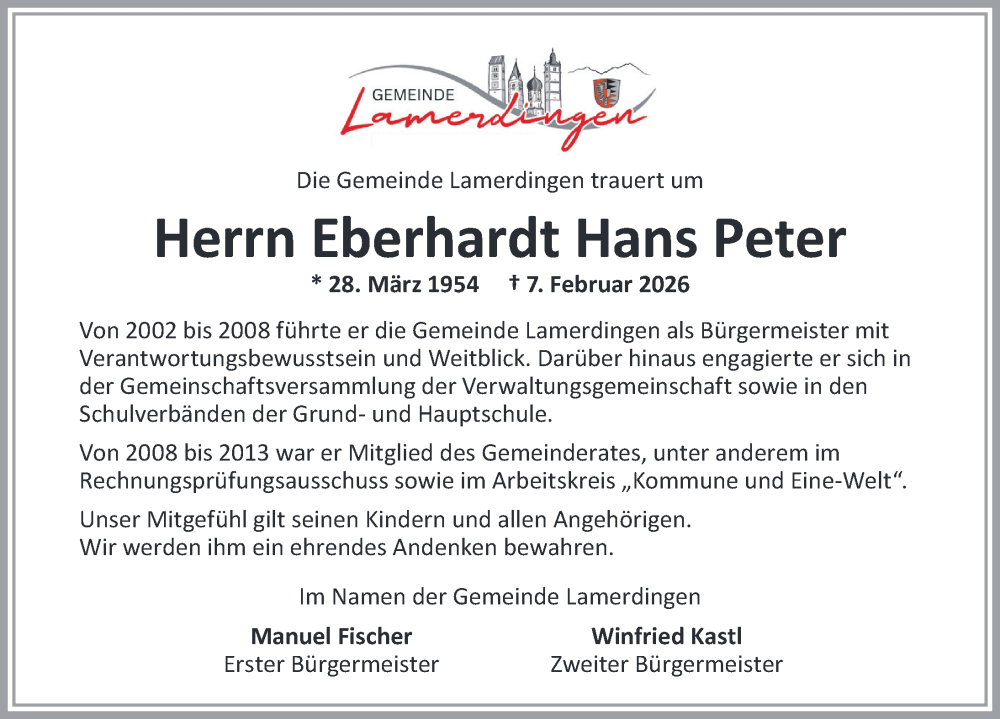Hier finden Sie alle Traueranzeigen aus der Zeitung, die bisher für Eberhardt Hans Peter erschienen sind. Weitere Traueranzeigen, die in der Zeitung erscheinen, werden hier ebenfalls aufgelistet