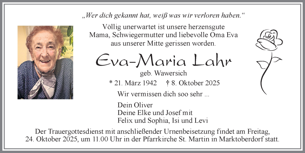 Hier finden Sie alle Traueranzeigen aus der Zeitung, die bisher für Eva-Maria Lahr erschienen sind. Weitere Traueranzeigen, die in der Zeitung erscheinen, werden hier ebenfalls aufgelistet