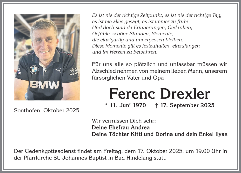 Hier finden Sie alle Traueranzeigen aus der Zeitung, die bisher für Ferenc Drexler erschienen sind. Weitere Traueranzeigen, die in der Zeitung erscheinen, werden hier ebenfalls aufgelistet