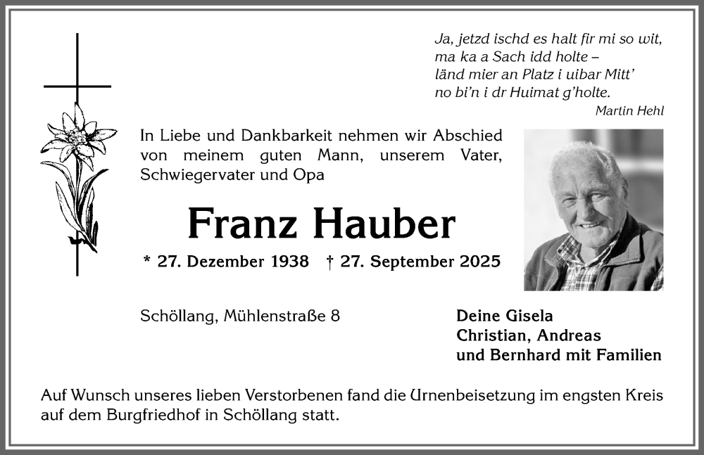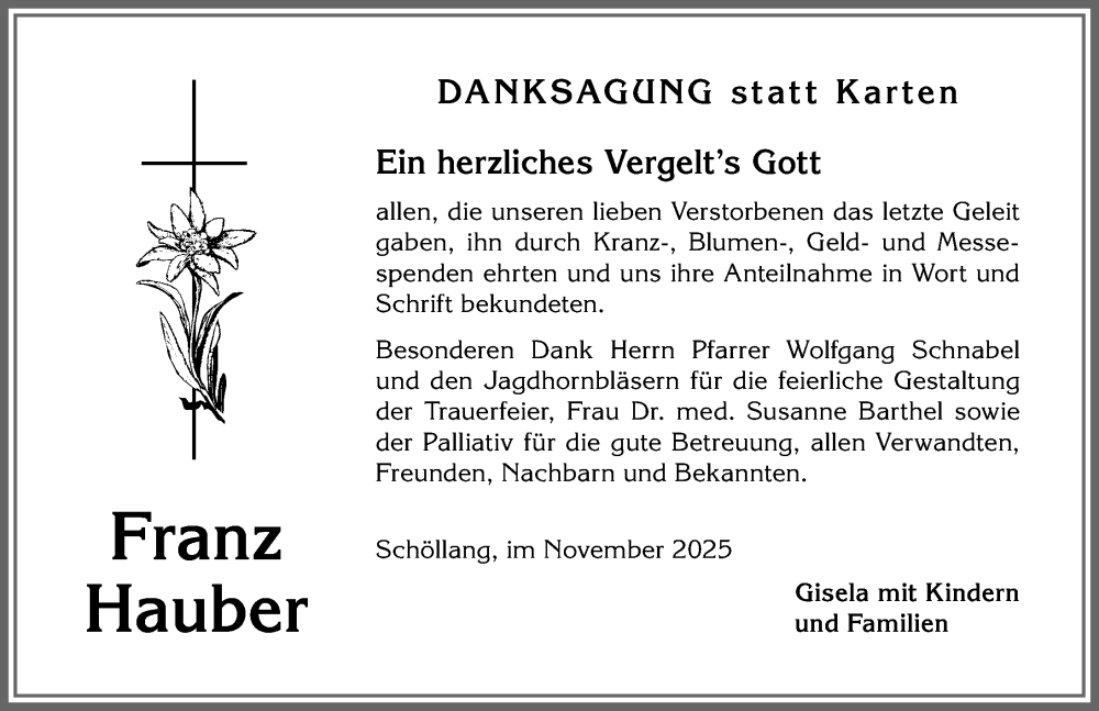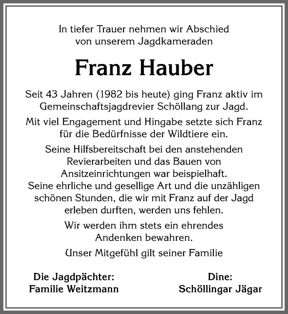 Hier finden Sie alle Traueranzeigen aus der Zeitung, die bisher für Franz Hauber erschienen sind. Weitere Traueranzeigen, die in der Zeitung erscheinen, werden hier ebenfalls aufgelistet
