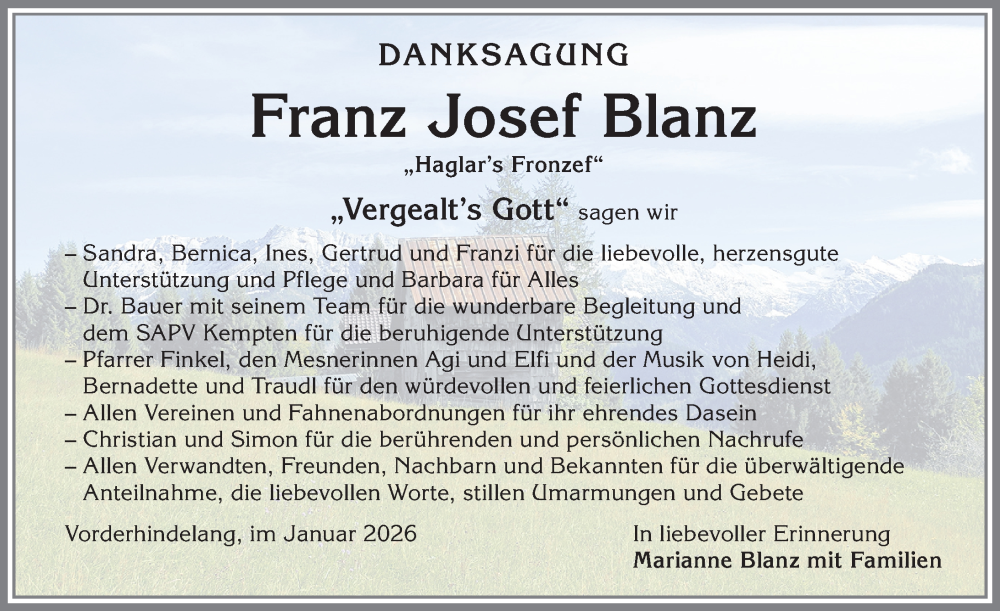 Hier finden Sie alle Traueranzeigen aus der Zeitung, die bisher für Franz Josef Blanz erschienen sind. Weitere Traueranzeigen, die in der Zeitung erscheinen, werden hier ebenfalls aufgelistet