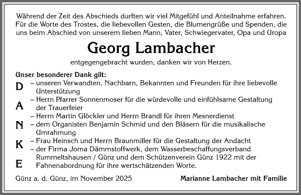 Hier finden Sie alle Traueranzeigen aus der Zeitung, die bisher für Georg Lambacher erschienen sind. Weitere Traueranzeigen, die in der Zeitung erscheinen, werden hier ebenfalls aufgelistet