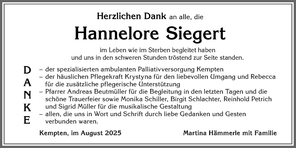 Hier finden Sie alle Traueranzeigen aus der Zeitung, die bisher für Hannelore Siegert erschienen sind. Weitere Traueranzeigen, die in der Zeitung erscheinen, werden hier ebenfalls aufgelistet