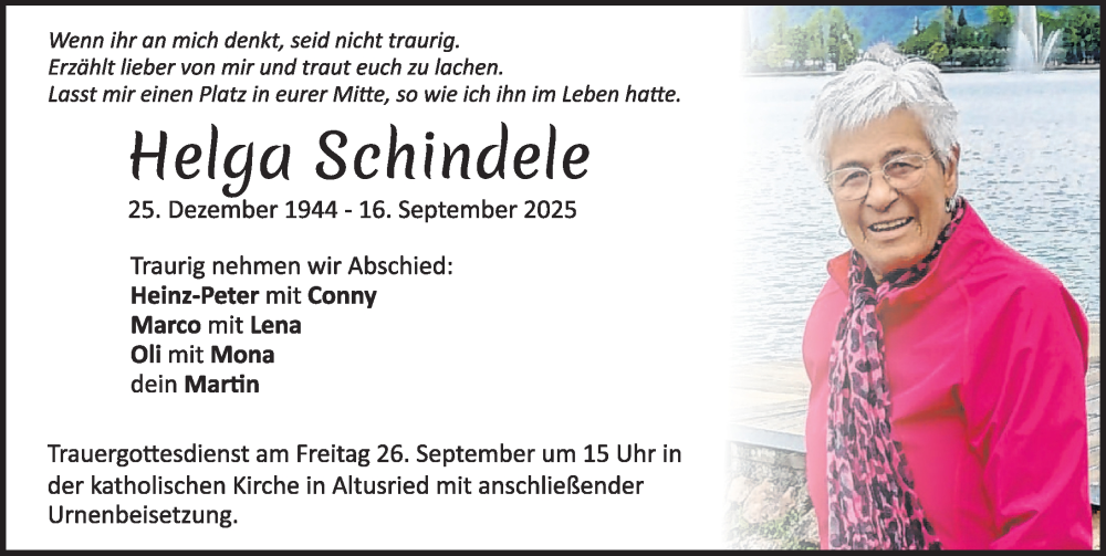 Hier finden Sie alle Traueranzeigen aus der Zeitung, die bisher für Helga Schindele erschienen sind. Weitere Traueranzeigen, die in der Zeitung erscheinen, werden hier ebenfalls aufgelistet