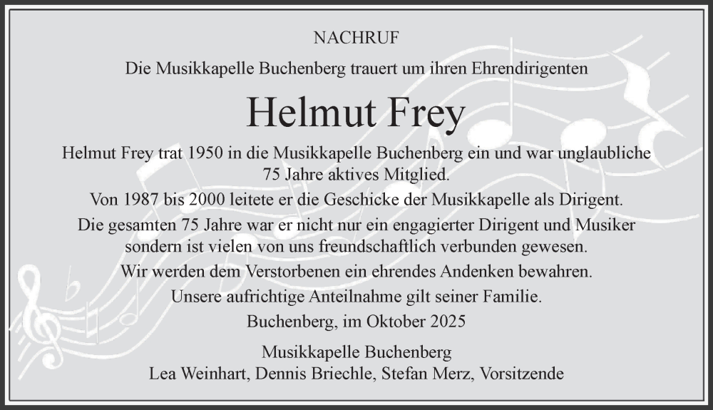 Hier finden Sie alle Traueranzeigen aus der Zeitung, die bisher für Helmut Frey erschienen sind. Weitere Traueranzeigen, die in der Zeitung erscheinen, werden hier ebenfalls aufgelistet
