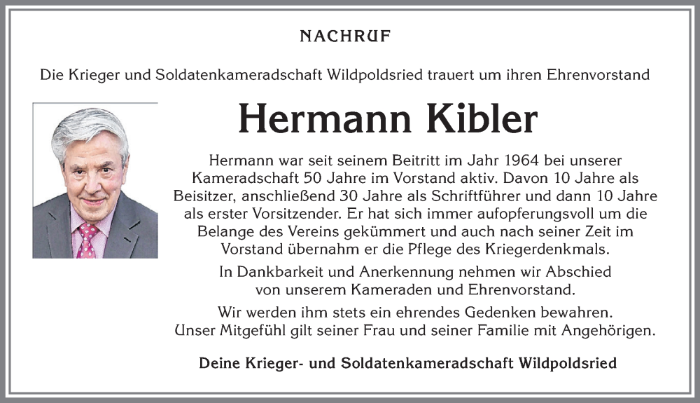 Hier finden Sie alle Traueranzeigen aus der Zeitung, die bisher für Hermann Kibler erschienen sind. Weitere Traueranzeigen, die in der Zeitung erscheinen, werden hier ebenfalls aufgelistet