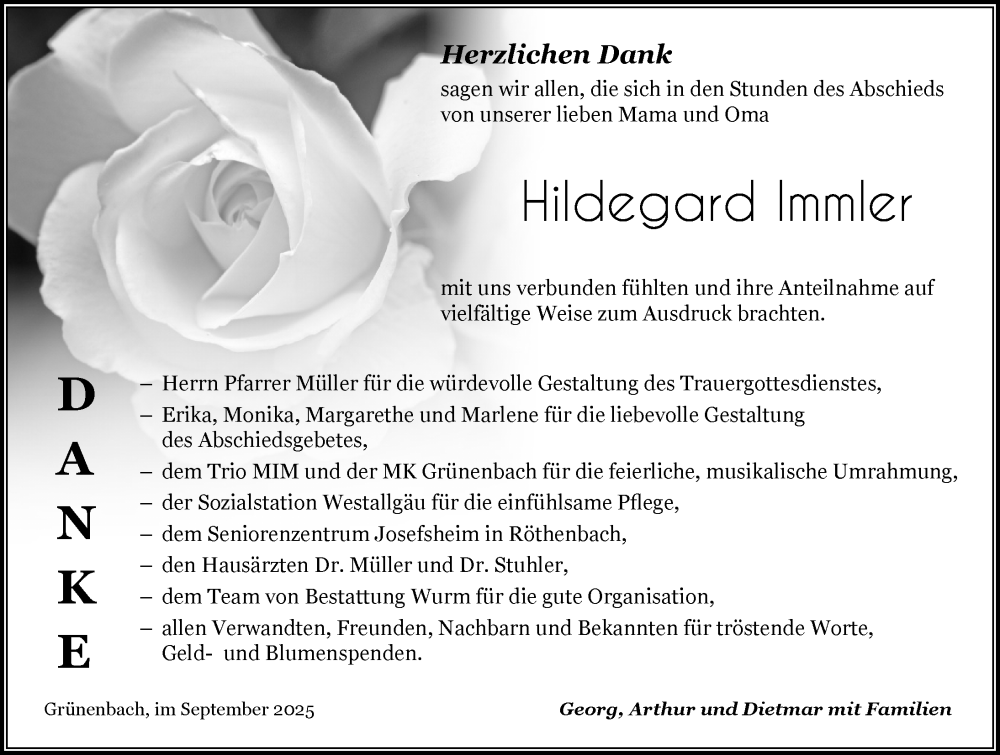 Hier finden Sie alle Traueranzeigen aus der Zeitung, die bisher für Hildegard Immler erschienen sind. Weitere Traueranzeigen, die in der Zeitung erscheinen, werden hier ebenfalls aufgelistet