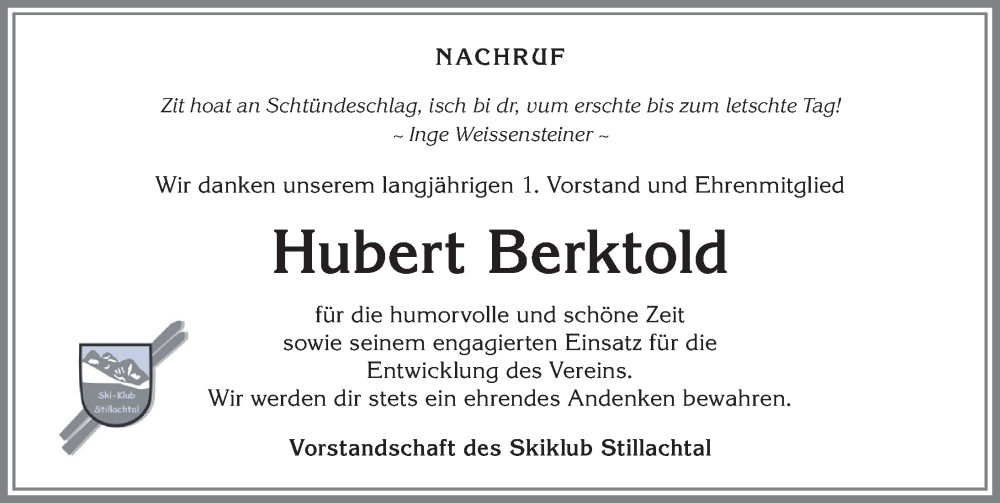 Hier finden Sie alle Traueranzeigen aus der Zeitung, die bisher für Hubert Berktold erschienen sind. Weitere Traueranzeigen, die in der Zeitung erscheinen, werden hier ebenfalls aufgelistet