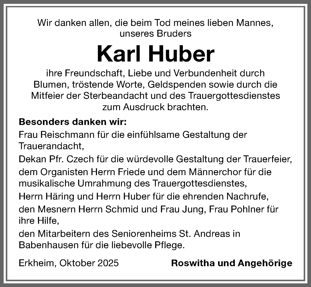 Hier finden Sie alle Traueranzeigen aus der Zeitung, die bisher für Karl Huber erschienen sind. Weitere Traueranzeigen, die in der Zeitung erscheinen, werden hier ebenfalls aufgelistet