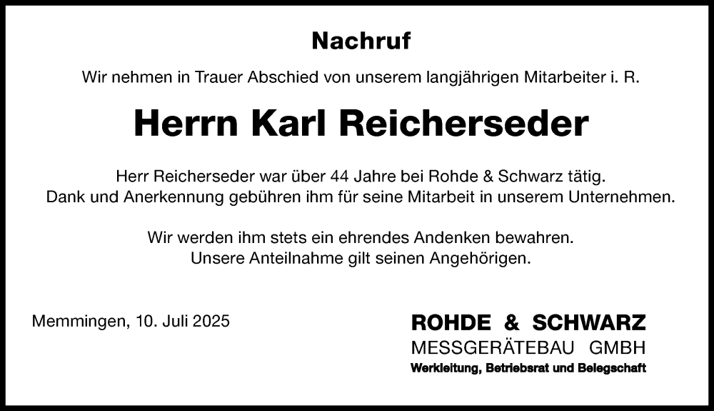 Hier finden Sie alle Traueranzeigen aus der Zeitung, die bisher für Karl Reicherseder erschienen sind. Weitere Traueranzeigen, die in der Zeitung erscheinen, werden hier ebenfalls aufgelistet