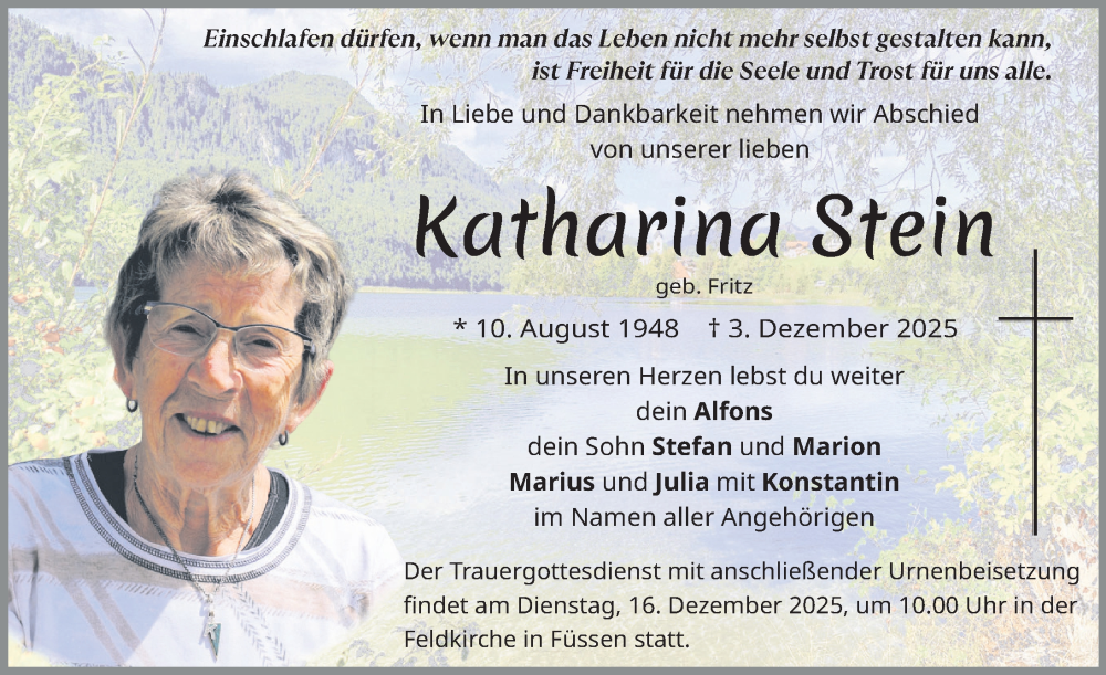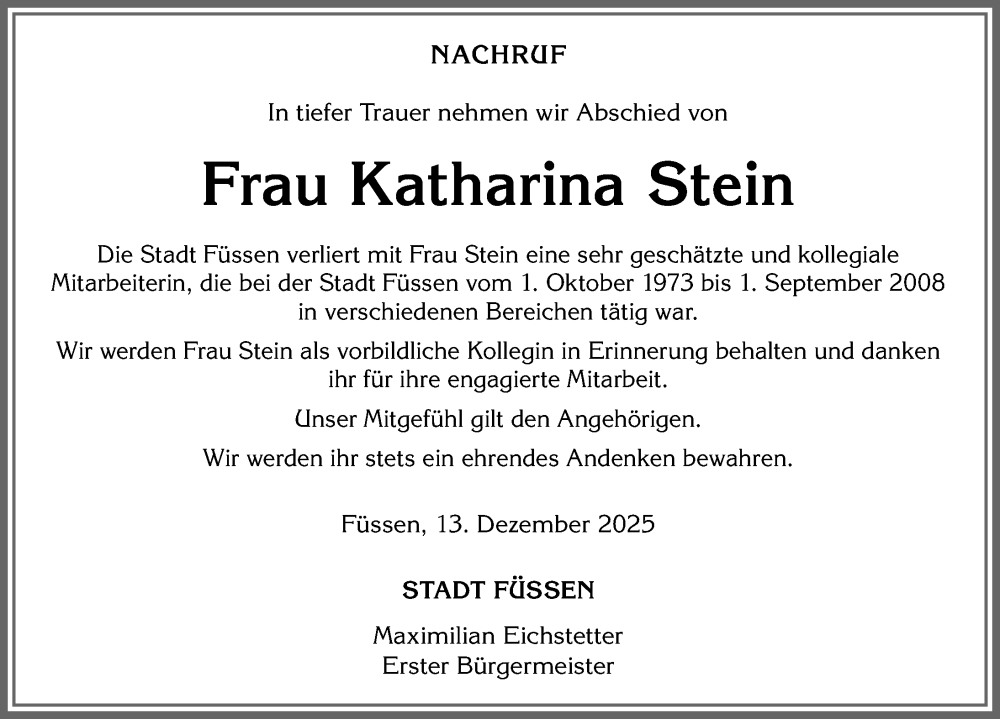 Hier finden Sie alle Traueranzeigen aus der Zeitung, die bisher für Katharina Stein erschienen sind. Weitere Traueranzeigen, die in der Zeitung erscheinen, werden hier ebenfalls aufgelistet