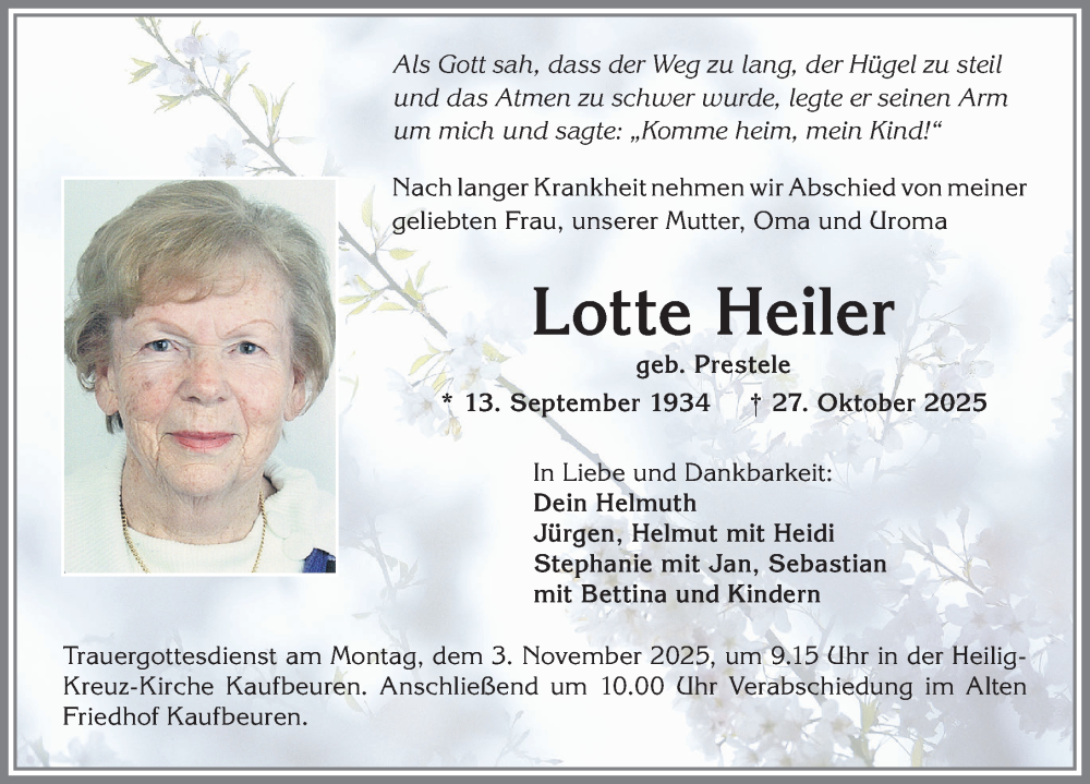 Hier finden Sie alle Traueranzeigen aus der Zeitung, die bisher für Lotte Heiler erschienen sind. Weitere Traueranzeigen, die in der Zeitung erscheinen, werden hier ebenfalls aufgelistet