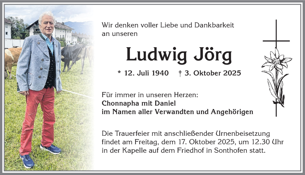 Hier finden Sie alle Traueranzeigen aus der Zeitung, die bisher für Ludwig Jörg erschienen sind. Weitere Traueranzeigen, die in der Zeitung erscheinen, werden hier ebenfalls aufgelistet