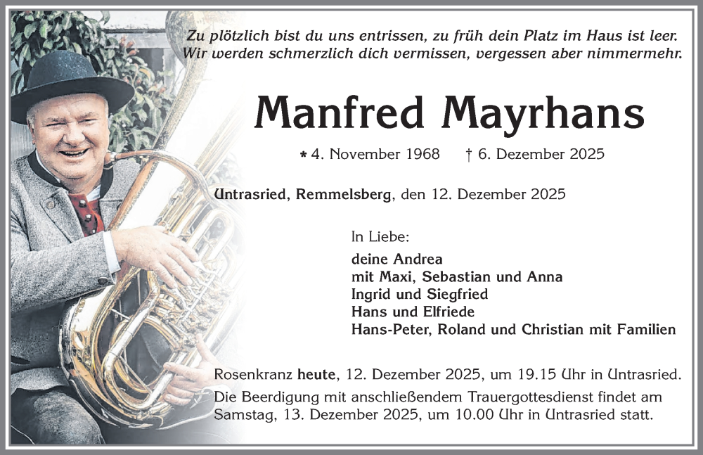Hier finden Sie alle Traueranzeigen aus der Zeitung, die bisher für Manfred Mayrhans erschienen sind. Weitere Traueranzeigen, die in der Zeitung erscheinen, werden hier ebenfalls aufgelistet