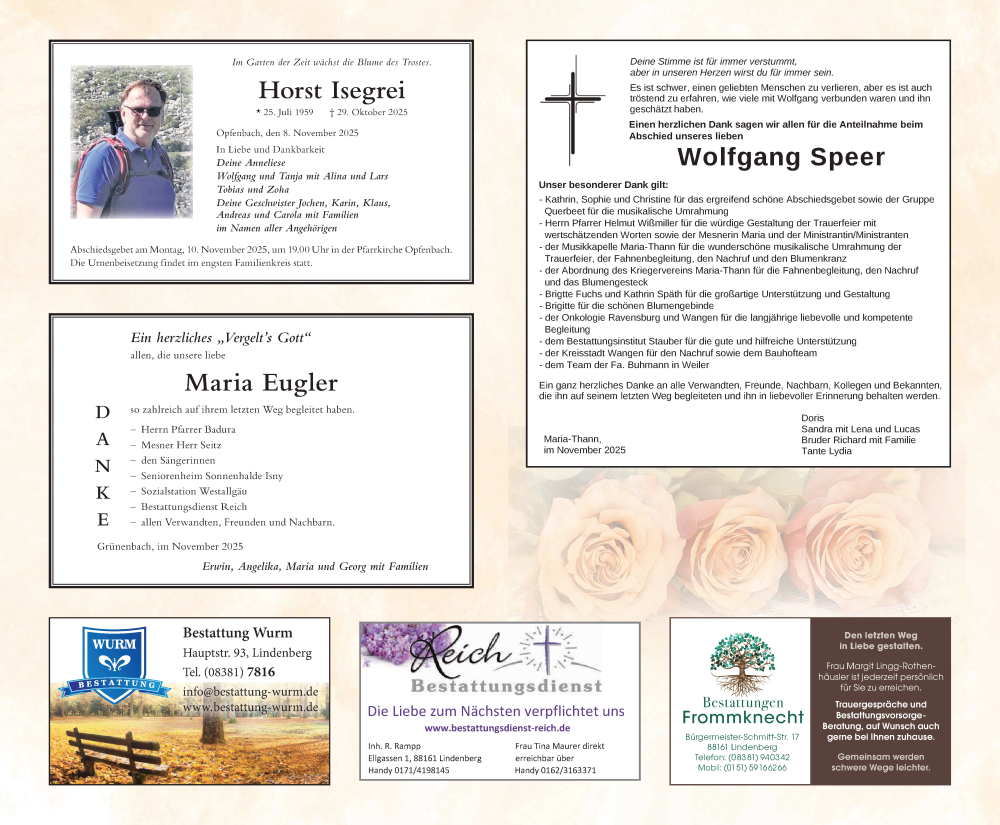 Hier finden Sie alle Traueranzeigen aus der Zeitung, die bisher für Maria Eugler erschienen sind. Weitere Traueranzeigen, die in der Zeitung erscheinen, werden hier ebenfalls aufgelistet