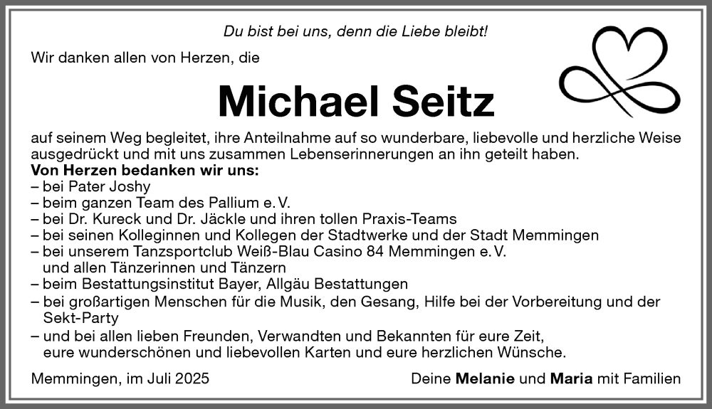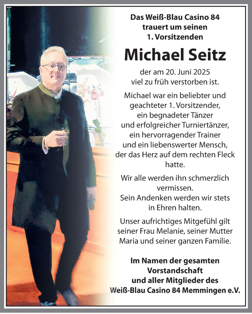 Hier finden Sie alle Traueranzeigen aus der Zeitung, die bisher für Michael Seitz erschienen sind. Weitere Traueranzeigen, die in der Zeitung erscheinen, werden hier ebenfalls aufgelistet