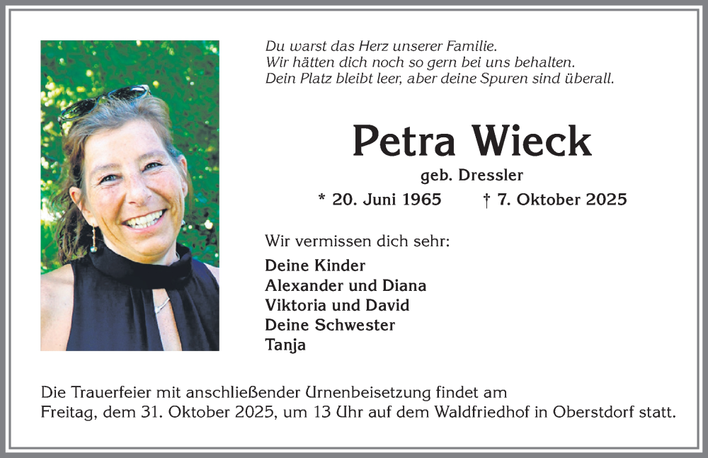 Hier finden Sie alle Traueranzeigen aus der Zeitung, die bisher für Petra Wieck erschienen sind. Weitere Traueranzeigen, die in der Zeitung erscheinen, werden hier ebenfalls aufgelistet