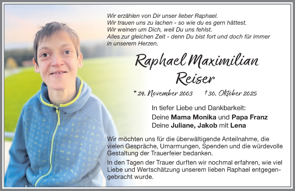 Hier finden Sie alle Traueranzeigen aus der Zeitung, die bisher für Raphael Maximilian Reiser erschienen sind. Weitere Traueranzeigen, die in der Zeitung erscheinen, werden hier ebenfalls aufgelistet