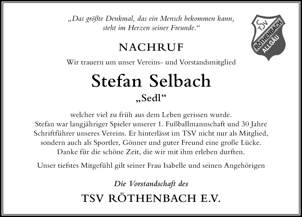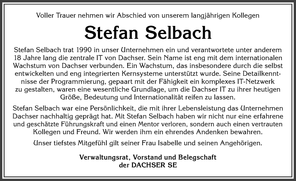 Hier finden Sie alle Traueranzeigen aus der Zeitung, die bisher für Stefan Selbach erschienen sind. Weitere Traueranzeigen, die in der Zeitung erscheinen, werden hier ebenfalls aufgelistet