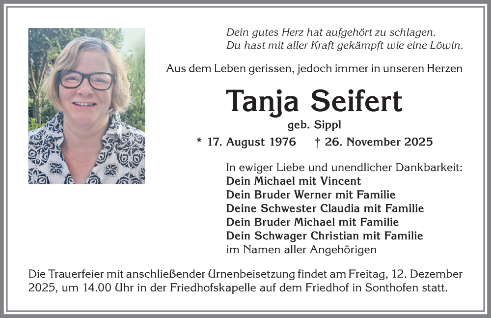 Hier finden Sie alle Traueranzeigen aus der Zeitung, die bisher für Tanja Seifert erschienen sind. Weitere Traueranzeigen, die in der Zeitung erscheinen, werden hier ebenfalls aufgelistet