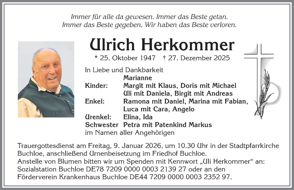 Hier finden Sie alle Traueranzeigen aus der Zeitung, die bisher für Ulrich Herkommer erschienen sind. Weitere Traueranzeigen, die in der Zeitung erscheinen, werden hier ebenfalls aufgelistet