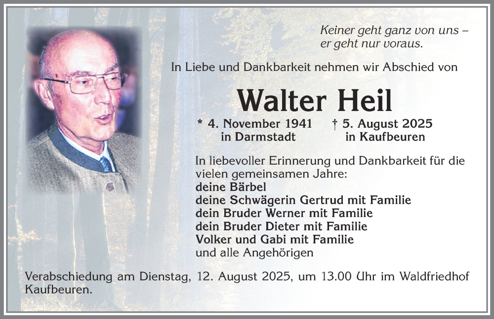 Hier finden Sie alle Traueranzeigen aus der Zeitung, die bisher für Walter Heil erschienen sind. Weitere Traueranzeigen, die in der Zeitung erscheinen, werden hier ebenfalls aufgelistet